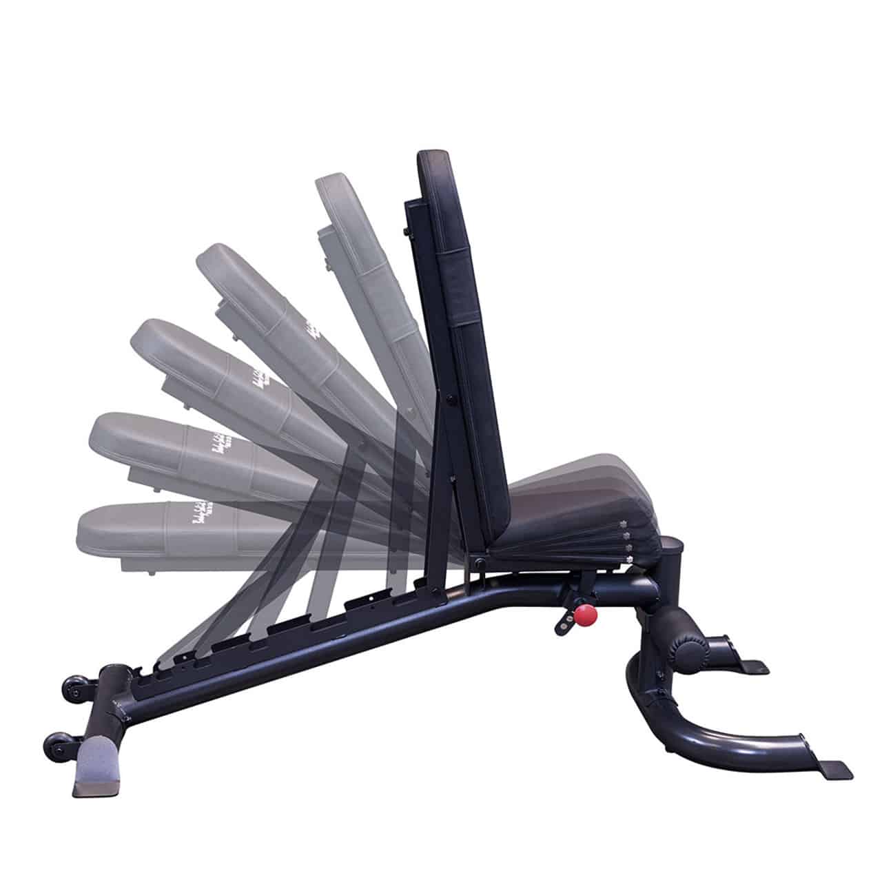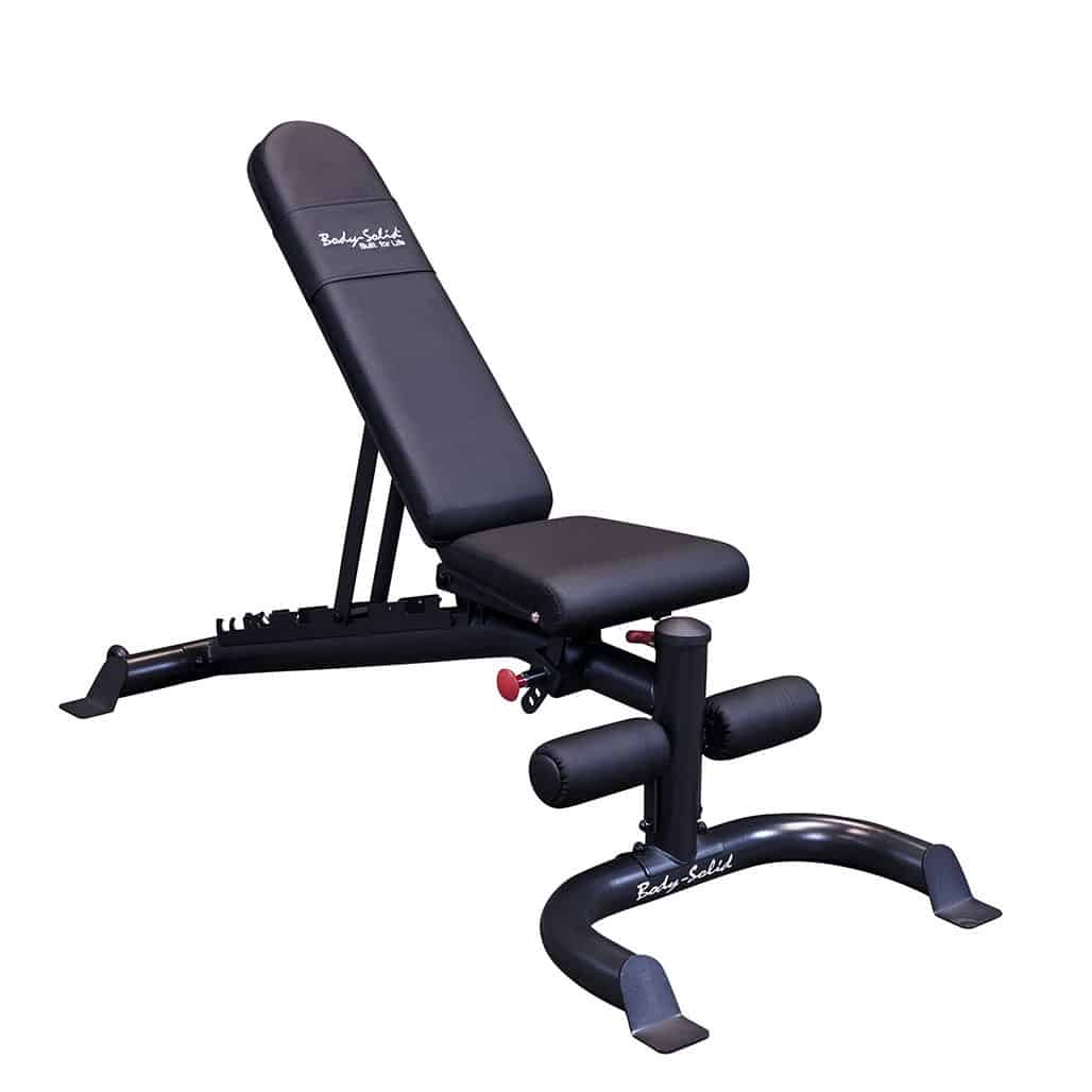 The heavy-duty 3" round steel frame can easily handle a load capacity of over 600 lbs while the back and seat pads lock into eight positions to align your body for perfect posture in all your exercises. Ultra-thick DuraFirm upholstery supports you comfortably through the most intense workouts. Lock your legs in the leg lock-down featuring oversize rollers for extra comfort and stability while you perform upper and lower abdominal exercises as well as incline and decline strength training. Convenient transport wheels let you move the GFID100 effortlessly in and out of any rack for the ultimate in versatility.