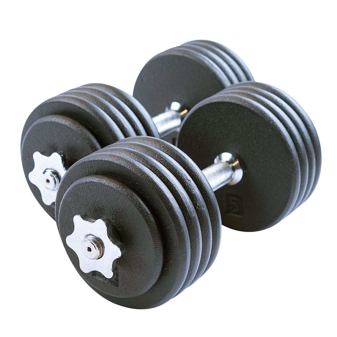 With these adjustable dumbbells, you don't need to purchase a complete set of dumbbells for your home gym. The easy adjustability allows for quick change of weights to meet your workout needs. Body-Solid Tools Adjustable Dumbbells take up far less space than a traditional dumbbell set, making them an excellent space-saving feature. These adjustable dumbbells are versatile, convenient, space-saving, and affordable, making them an excellent option for your home gym. With this set, you can perform all your favorite dumbbell-based exercises like biceps curls, triceps extensions, presses, rows, and so much more.