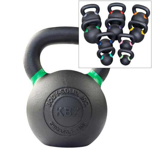 Each KBX Training Kettlebell has a stylish embossed logo and easy-to-read weight distinction in both kg and lb to ensure you grab the right kettlebell each time. Body-Solid Tools KBX Training Kettlebells are available in 14 different weights with each weight featuring distinct and easy-to-distinguish color coding.