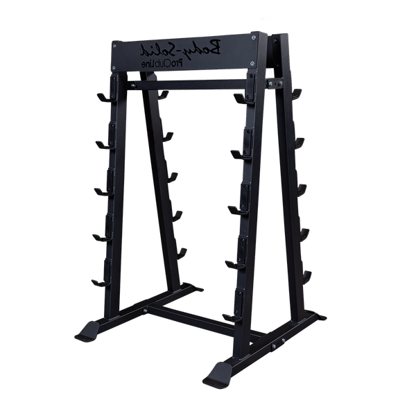The Fixed Weight Barbell Rack provides convenient and easy-access storage for up to 10 fixed-weight barbells.
