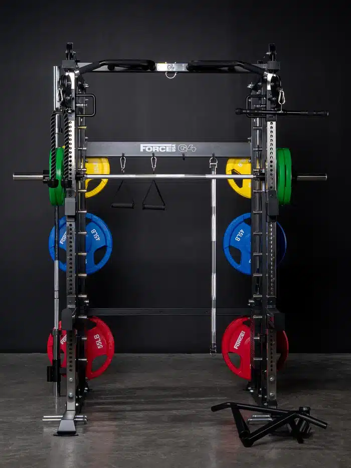 Built to grow with you. Smooth Smith action on quad-bearing rollers. Expandable with Jammer Arms, Leg Press, and more. Upgradeable to 220 lb stacks when you're ready. The G4 CORNERSTONE™—your gym's foundation, perfected.
