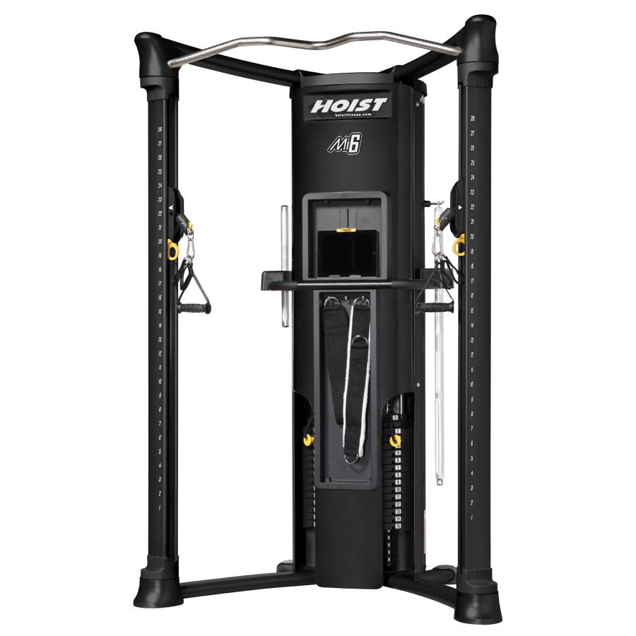 The unique and stylish HOIST® Mi6 Functional Trainer is a personal pulley gym that is engineered with the innovative excellence and aesthetic appeal that the fitness industry has come to expect from HOIST. This gym provides a complete range of functional training exercises designed to obtain maximum results and achieve a strong and versatile body. The Mi6 is engineered to build multiple muscle groups through smooth, rhythmic, and continuous movements that support the body as it moves through life. Learn more about the features and specs below.