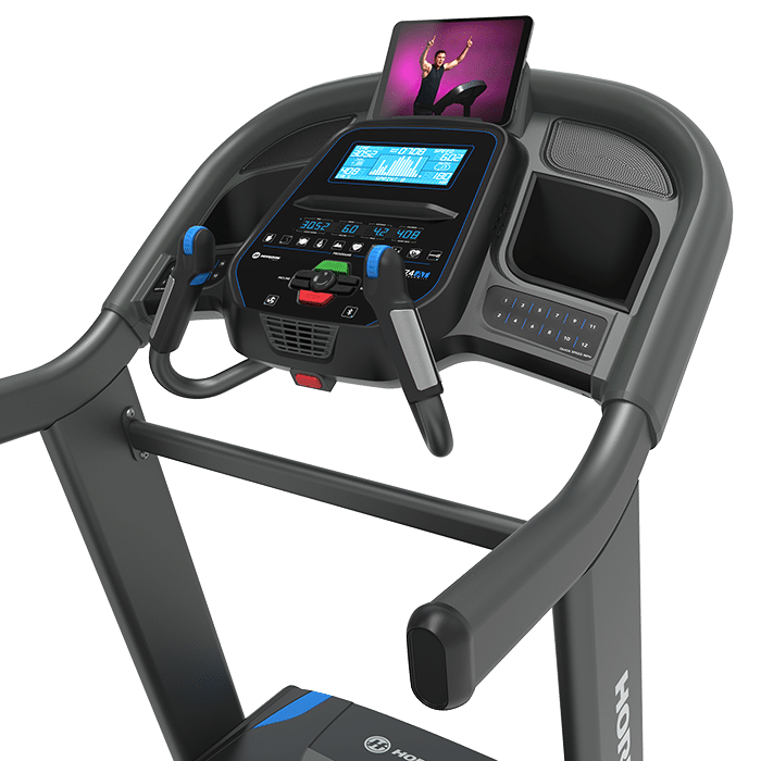 Enjoy faster, smoother interval changes using QuickDial™ controls that simplify speed and incline shifts without breaking your stride. Exclusive to the Horizon Studio Series.