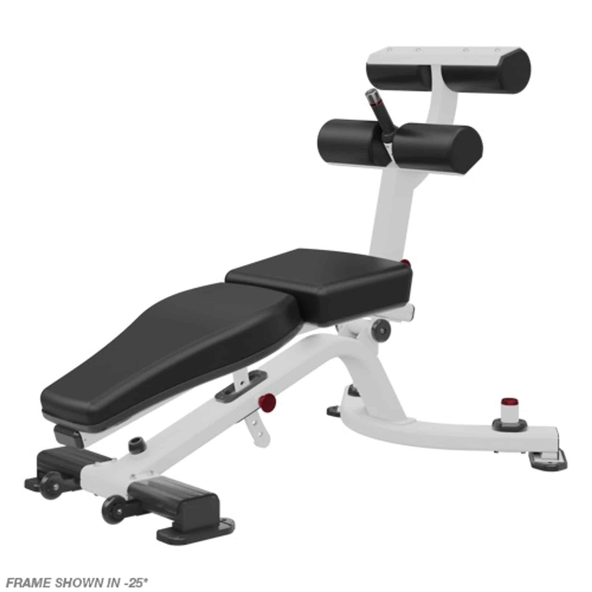 - Multiple positioning for exercise variation 0 to 30 degrees of decline