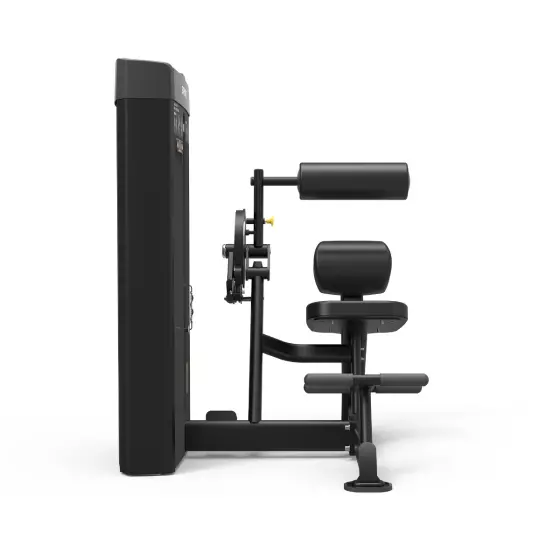 The Abdominal Crunch and Back Extension machine comes equipped with an adjustable roller pad for ideal positioning across the upper chest or back, with an adjustable range of motion to fit users of all sizes. Dual foot bars provide lower body stabilization, while a lower back pad provides stability and full-range of motion.