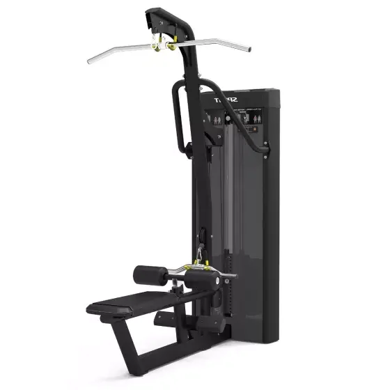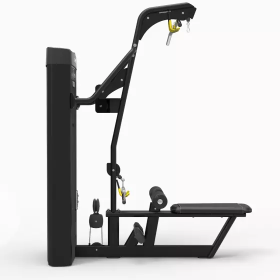 The Lat Pulldown and Seated Row machine combines the two most popular back exercises into one modern design. The traditional Lat Pulldown bar can be adjusted to the user’s preferred height. While in the Seated Row position, foot braces aid with stabilization and storage hooks secure the pulldown bar when not in use.