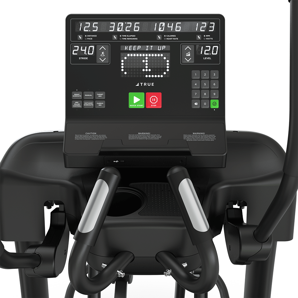 The Most Versatile Cardio Machine On the Market: a stepper, elliptical, and runner all in one machine. Ranging from 13″ to 30″, the TRUE Spectrum provides one of the largest adjustable strides in the industry and versatility for every user with 1 stride adjustment. With quick keys, users can go from a stepping motion to a full-stride running motion with the push of a button to work out a variety of muscle groups in one cardio session.